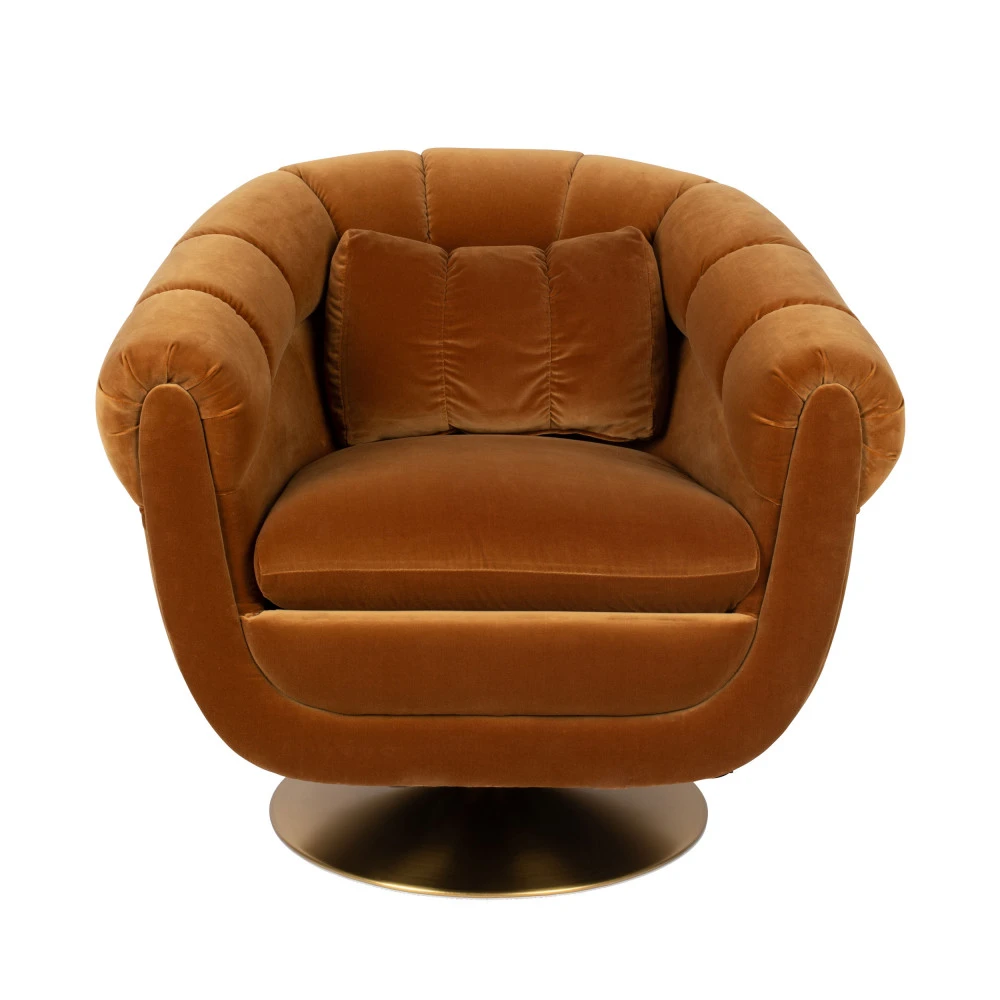 La collection Member est une pure tentation à laquelle on ne résiste pas. Ce fauteuil en tissu stylé démontre que le vintage peut s’associer au raffinement pour un rendu sensationnel. Il est monté sur une base pivotante en acier électro-plaqué brillant à ras du sol. Cela s’harmonise avec l’assise et le dossier aux courbes accueillantes pour donner une silhouette contemporaine admirable par tous les angles.