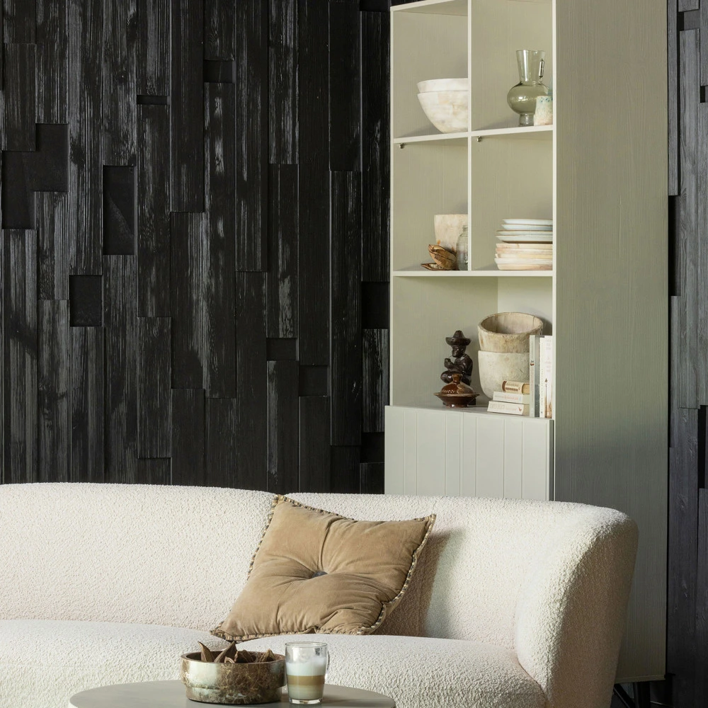 Montez encore d’un cran et vous apercevrez 4 étagères ouvertes. L’espace idéal pour vous faire plaisir niveau décoration ! Bougies, plantes, vases, bibelots, tous y trouveront leur place. Cet espace peut également faire office de bibliothèque, car, on le sait, les livres dans une pièce à vivre suffisent à rajouter un incroyable cachet.
