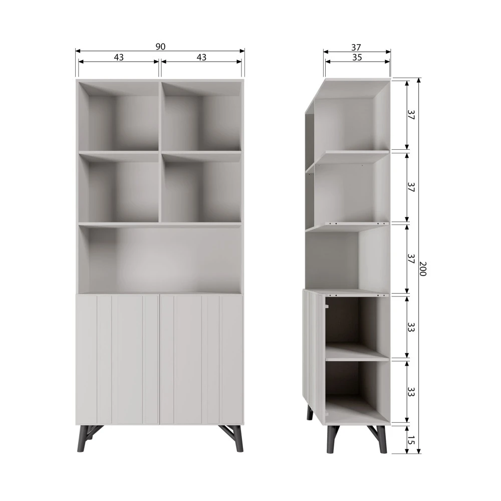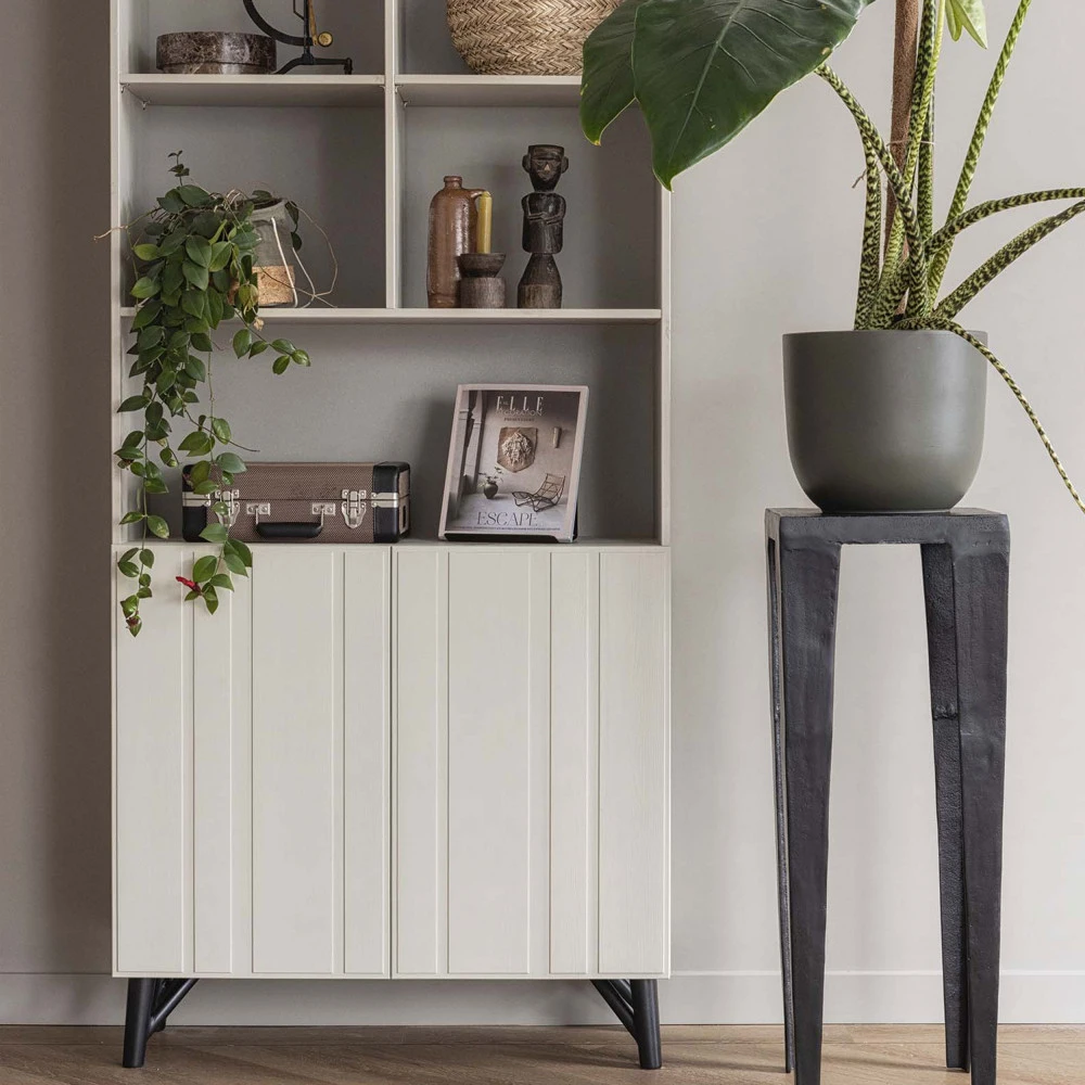 Ce meuble mesure 200 cm de hauteur, 90 cm de largeur et 37 cm de profondeur. Ici, la marque Woood a opté pour un bois massif de pin qu’elle a ensuite peint pour un rendu contemporain et élégant.