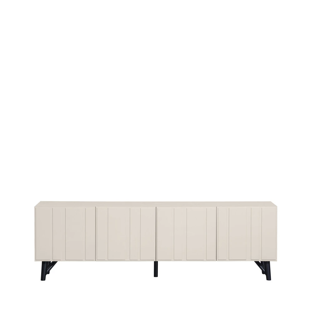 Les 4 portes visibles sur la façade cachent 2 compartiments et chacun d’entre eux se compose de 2 espaces de stockage. Ce meuble est donc idéal pour y installer votre télé, certes, mais pas uniquement. Il est aussi parfait pour organiser le rangement multimédia. Console, home cinéma, enceinte : Miller est l’ennemi des câbles électroniques qui traînent et des jeux vidéos qui jonchent le sol. Grâce à son système de passe-câbles, vous pourrez brancher votre télévision sans qu’aucun câble ne vienne impacter le charme de ce buffet.