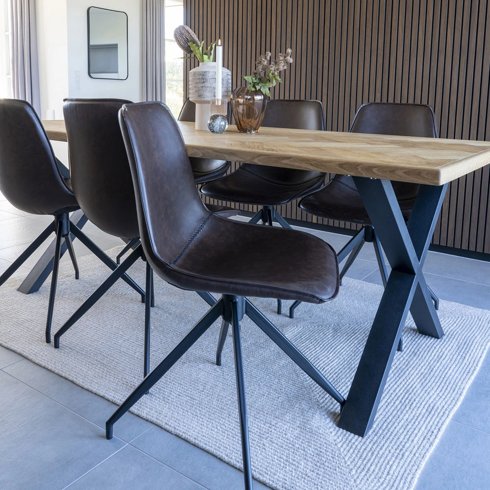 Pivotantes, ces chaises se composent d’une structure en acier puis d’un dossier et d’une assise en polyuréthane. Elles mesurent 86 x 48 x 54 cm. Parées de lignes simples tout en finesse, ces chaises effet cuir affichent un style vintage avec une petite note contemporaine apportée par les pieds en métal.