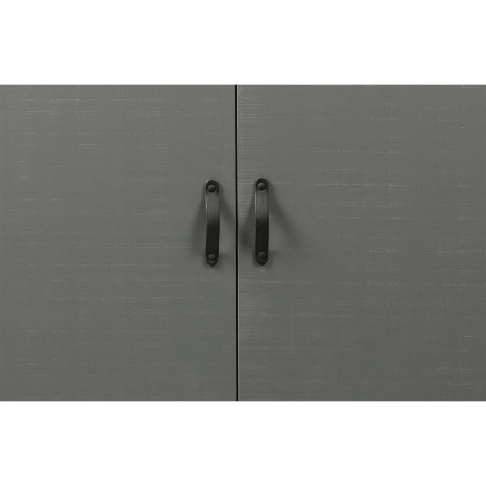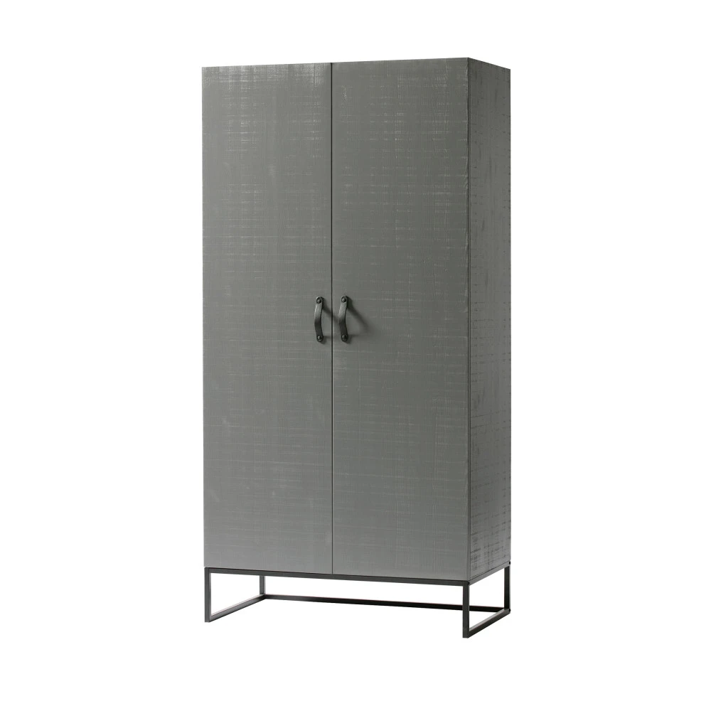 Ce meuble est robuste et stylé. Il est fabriqué en bois massif issu de forêts à contrôle écologique, certifié FSC® Mix. La surface du bois a subi un traitement spécial : le sciage en travers. Ce qui donne une texture sablée rustique pour conférer au meuble, un aspect vintage et brut. Les inégalités et les petites fissures ainsi apparentes symbolisent une authenticité exemplaire pour chaque armoire Morris. On ouvre délicatement les portes grâce à des poignées en cuir noir : un joli détail pour plus d’effet.