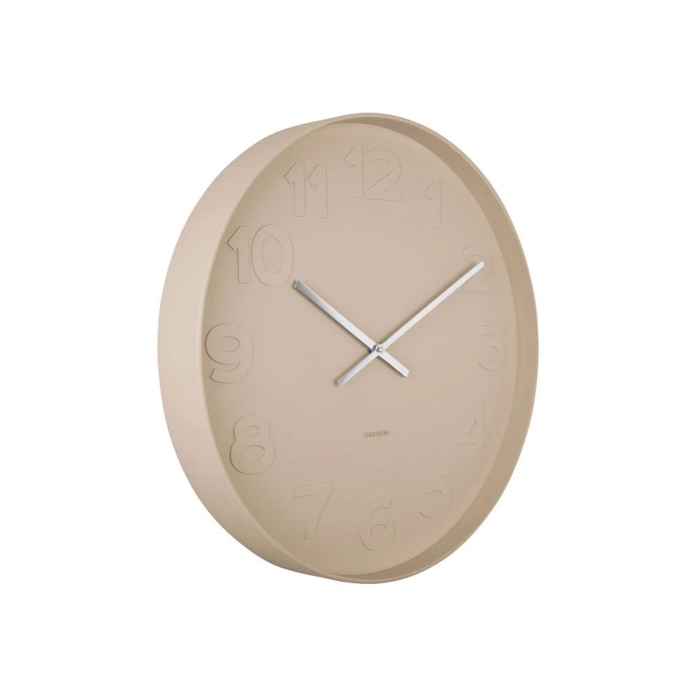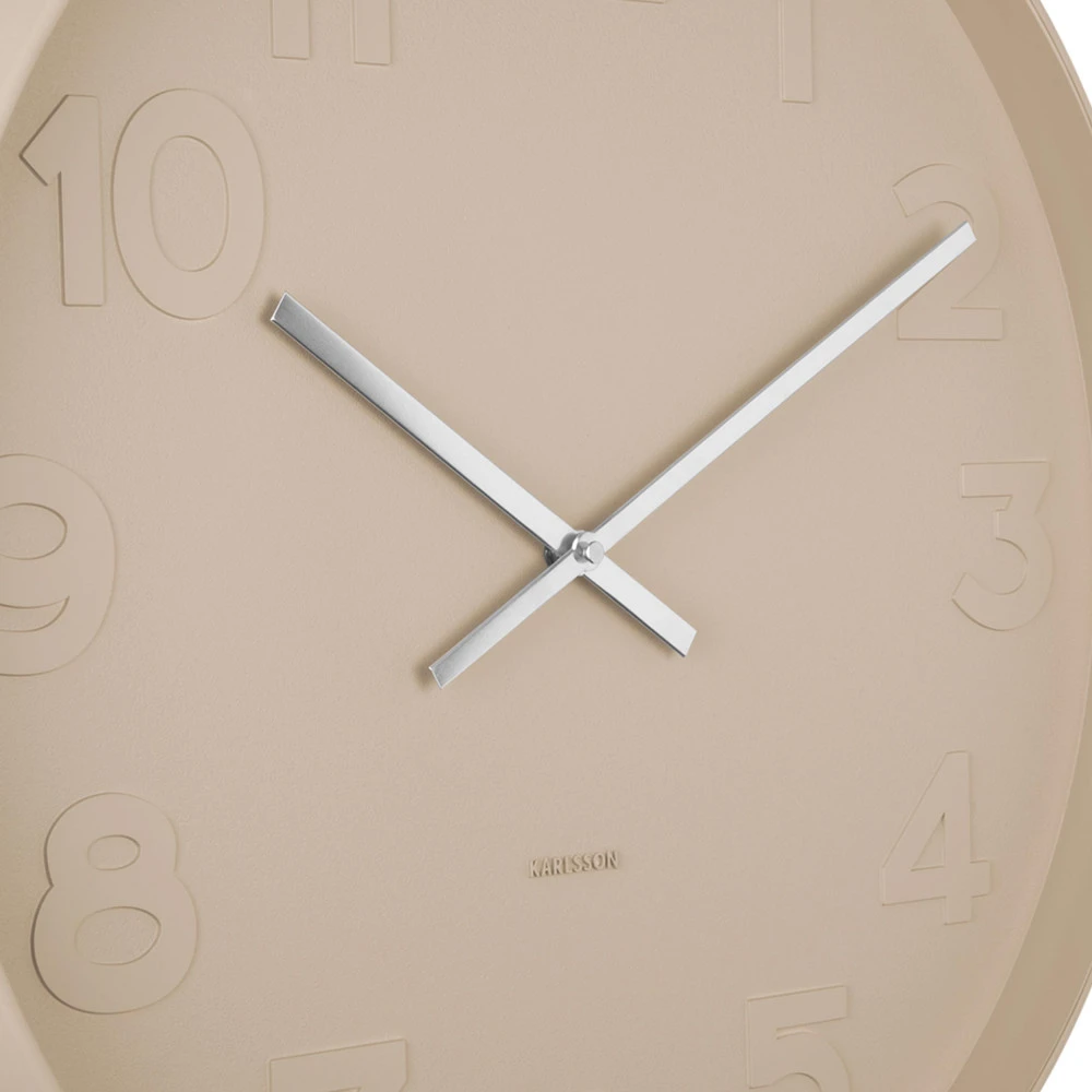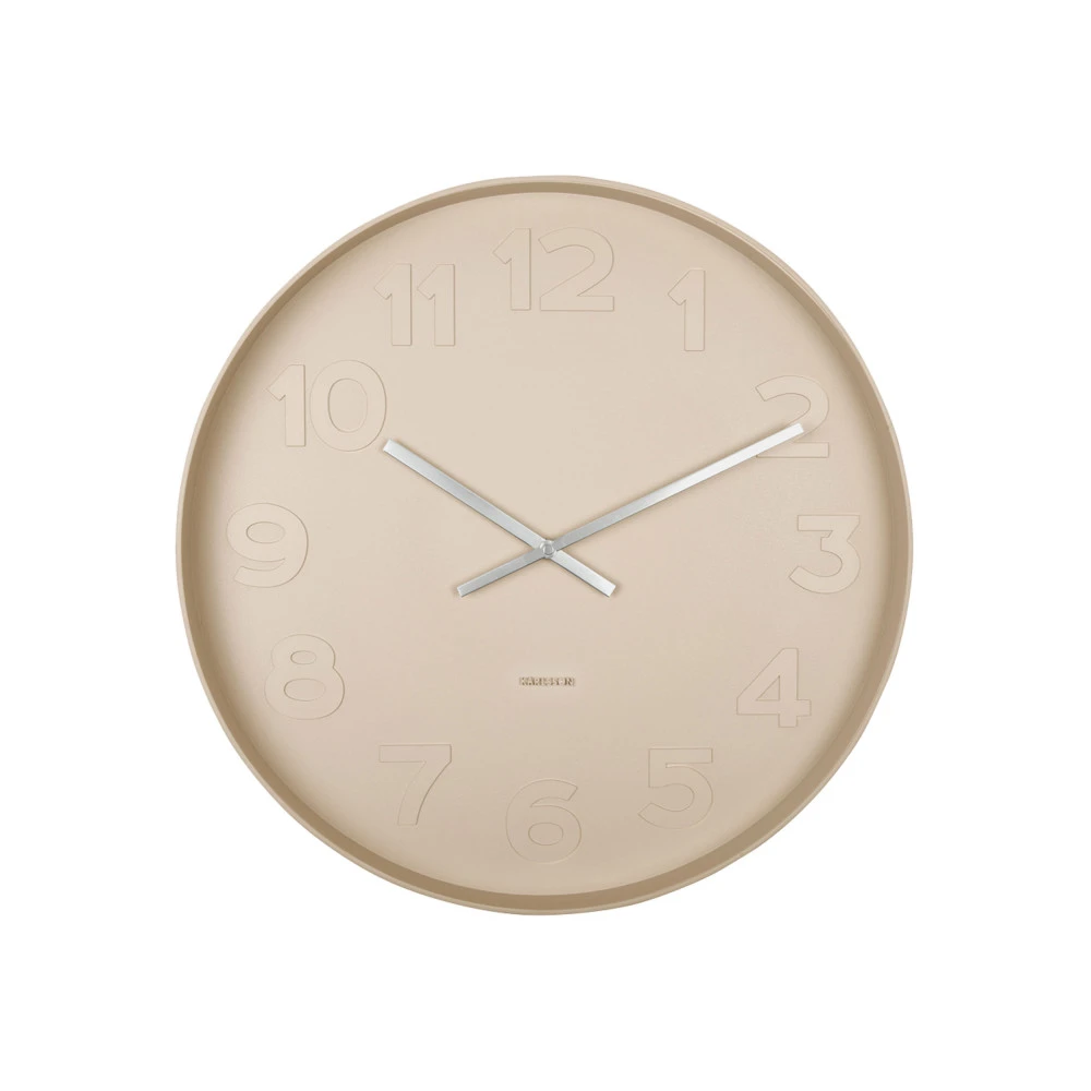 L’horloge murale ronde Mr. Brown se caractérise par un monochrome beige ainsi qu’une finition mate. Les chiffres sont en relief, ce qui vous permettra de les distinguer du fond de la même couleur.