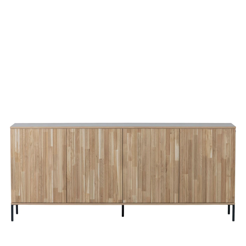 Ce meuble design au style intemporel ajoute une touche élégante au décor grâce à ses finitions soignées. Ses pieds fins en métal soulignent un style dans l’air du temps, tandis que son matériau en bois lui confère un charme indémodable. Le buffet New Gravure est disponible bois clair et en bois peint en noir pour s’adapter à la décoration en place.