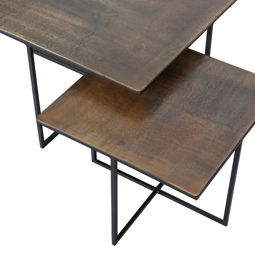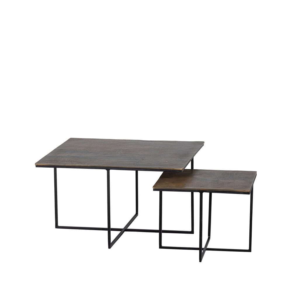 Toutes deux s’élèvent sur un piètement croisé en acier noir, respectivement à 48 cm et 36 cm. Les plateaux carrés affichent une dimension confortable de 70 cm pour la plus grande des tables, et 44 cm pour la plus compacte. Eux aussi s’habillent d’acier, et se fondent dans un salon moderne ou près d’un canapé aux teintes claires ou sourdes.