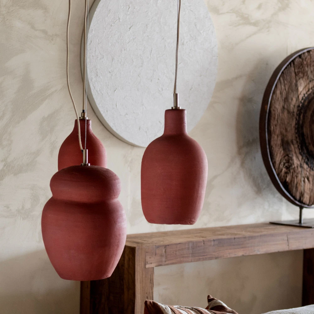 Ce luminaire à suspendre, confectionné tout en argile, ressemble à une jarre ou autre pot antique. Très joli, n’est-ce pas ? Ce modèle sera parfait pour créer une déco matchy-matchy chez vous, en faisant un clin d’oeil à vos récipients d’extérieur. Avec son style bohème, on l’imagine bien aux côtés d’un canapé en tissu, de meubles en bois brut et d’autres éléments de déco confectionnés dans des matières naturelles.