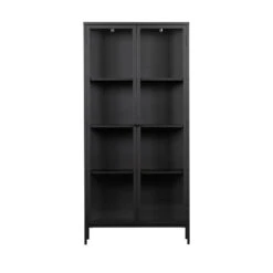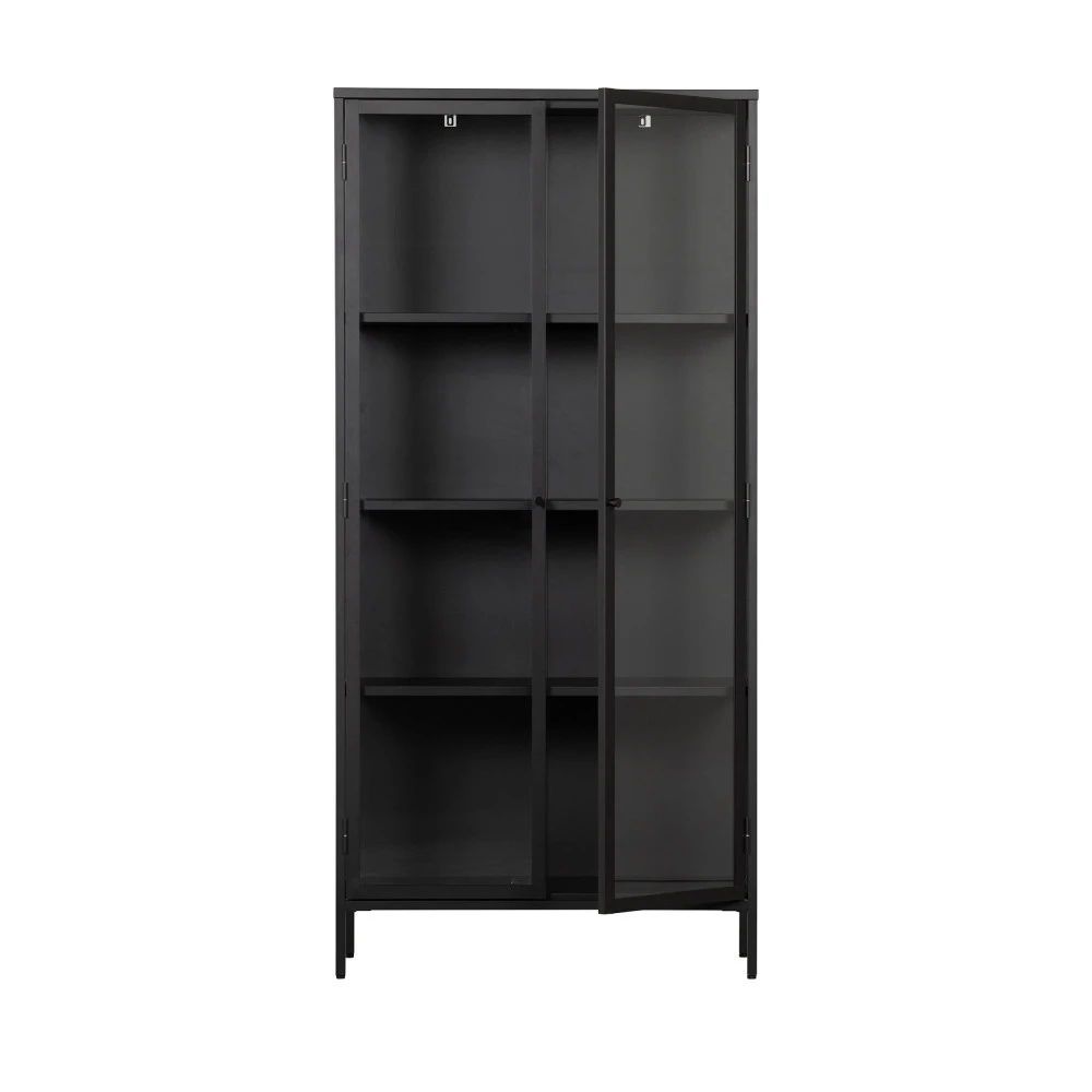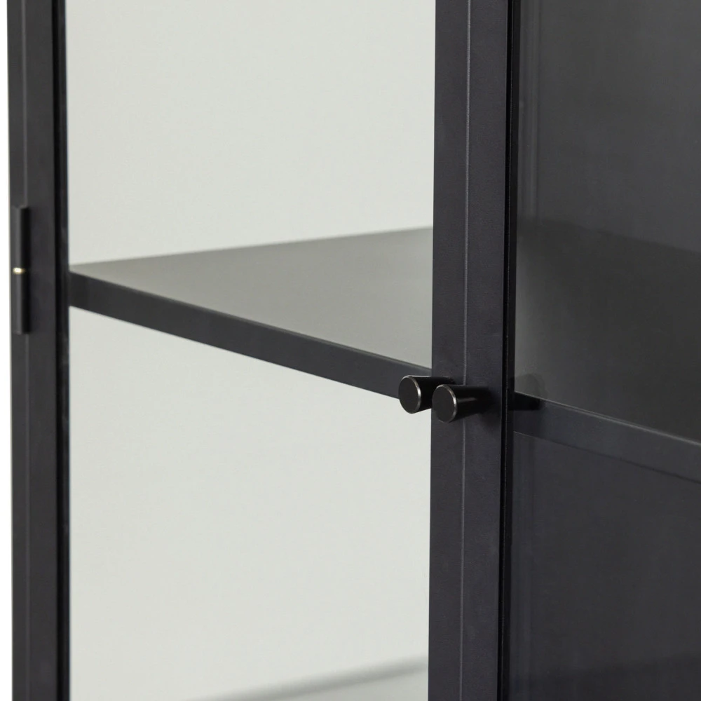 La vitrine Precious offrira un bel écrin à vos objets de collection ou à votre belle vaisselle. La couleur noire du fond fait ressortir vos objets pour les mettre en valeur dans votre vitrine. Sa conception tout en métal noir associée à la simplicité de ses lignes fait qu’on la voit très bien prendre place dans un intérieur au style néo-industriel, dans un loft ou un intérieur style atelier.