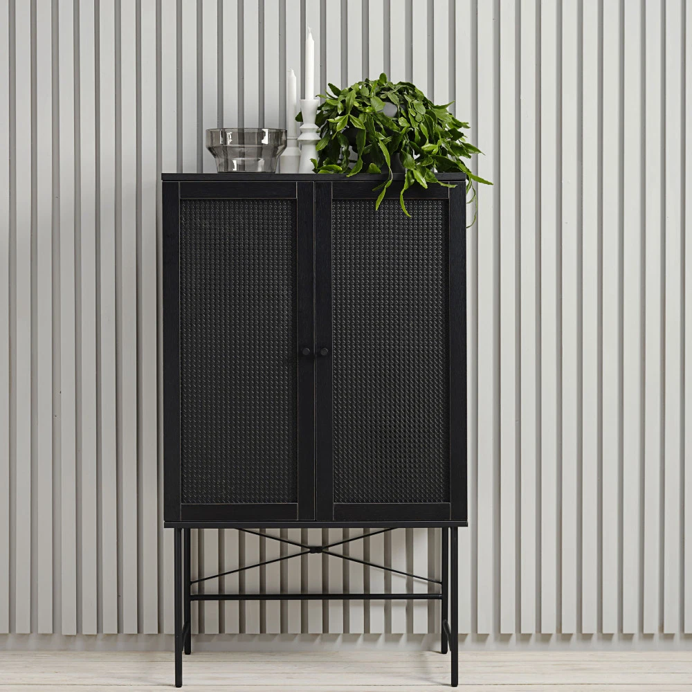 La beauté de ce meuble de rangement réside également dans ses lignes simples rehaussées par des détails bien pensés comme les poignées qui se fondent dans les nervures du bois ou le cannage présent sur les façades des 2 portes. Sobre, intemporel et résolument bohème, il se mariera aisément au reste de votre mobilier.