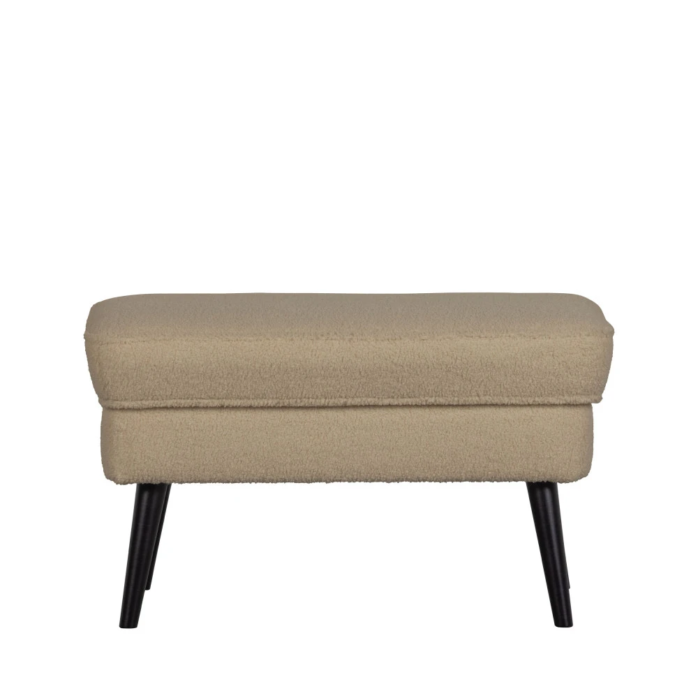 Le repose-pieds Rocco est composĂ© d’une structure en bois recouverte d’une belle maille bouclette en polyester, doux et cocooning. Il est posĂ© sur des pieds compas en bois verni noir assez hauts. Son assise rembourrĂ©e offre un accueil moelleux très confortable. Sa forme rectangulaire en fait un repose-pieds aux dimensions gĂ©nĂ©reuses, vĂ©ritable plus de confort dans votre salon.