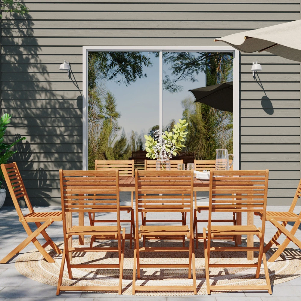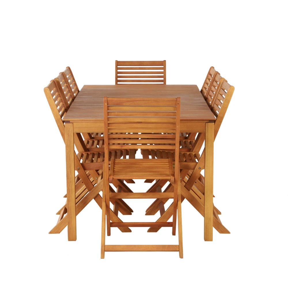 Vous vous demandez certainement d’où vient son petit charme exotique. On doit celui-ci au bois d’eucalyptus FSC, matériau à partir duquel cet ensemble de jardin a été entièrement fabriqué. Sa teinte claire, dans les tons miel, est un sacré atout puisque vous pourrez l’associer avec tous types de matériaux et de couleurs.
