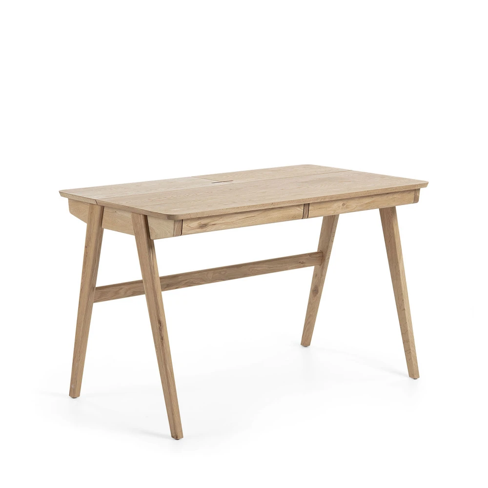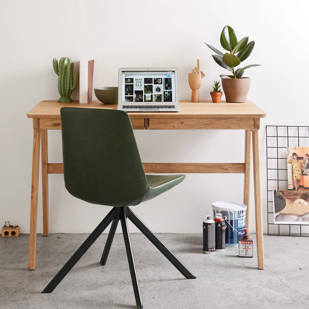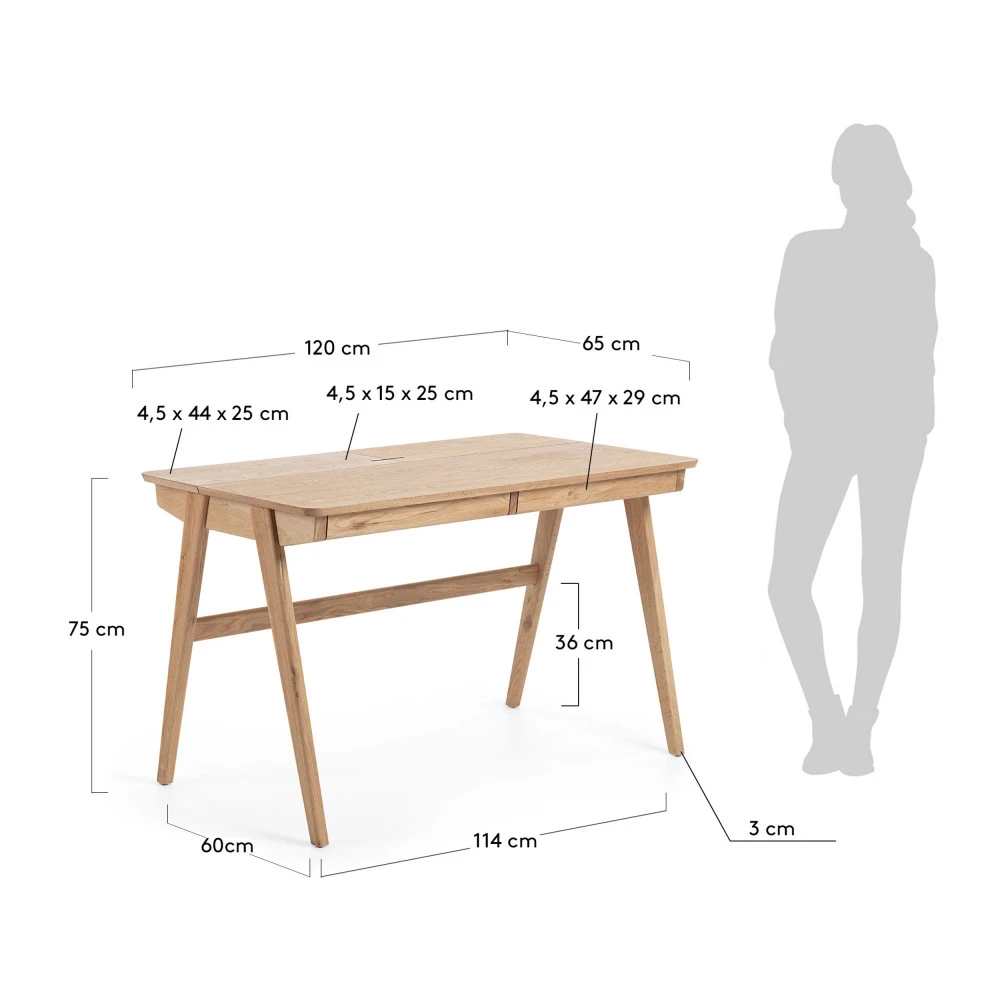 Avec le bureau Samuedo, on peut travailler dans le calme et dans le confort. Design et charmant, ce bureau en bois 120×65 cm moderne aux accents nordiques. Les pieds en bois inclinés classiques s’harmonisent avec le plateau pour un look épuré. En bonus, ce bureau pratique offre deux tiroirs de rangement pour un coin travail bien organisé.