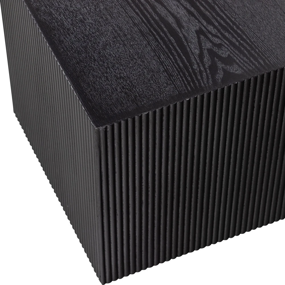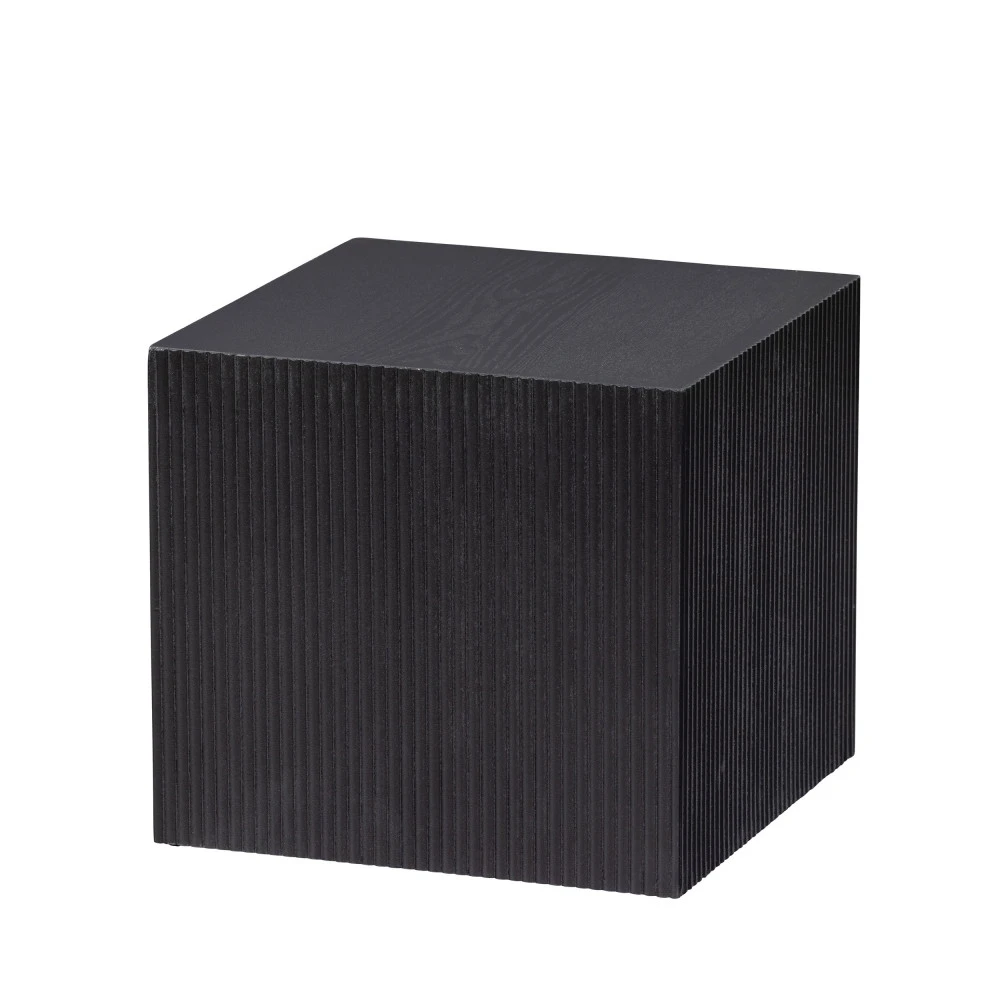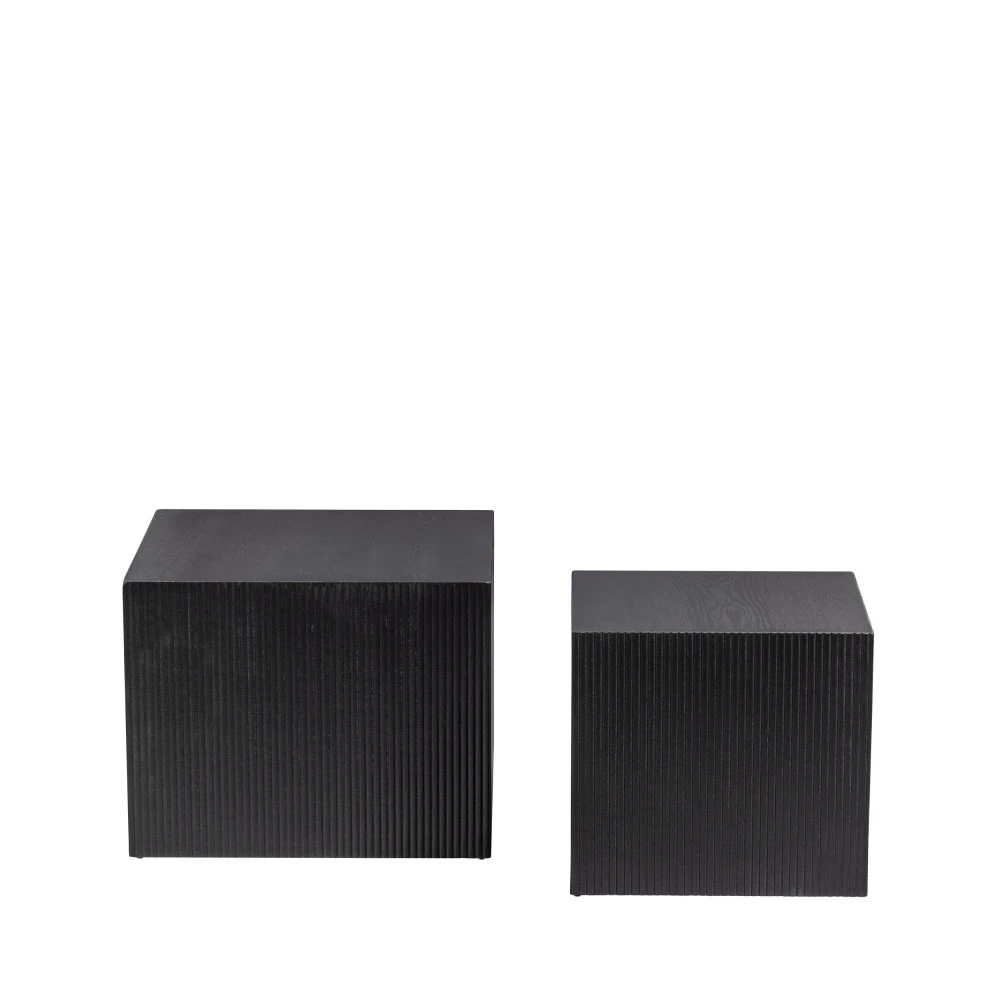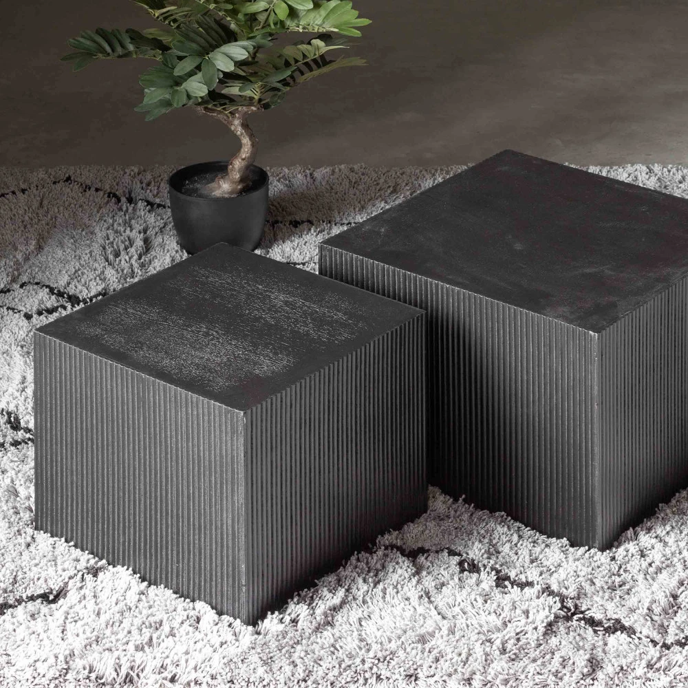 Ces deux tables basses de chez WOOOD sont conçues en MDF de pin joliment laquées en noir mat, ce qui leur donne une finition à l’effet naturel et l’impression de tables en bois plein. Pour une touche design supplémentaire, les panneaux de bois sont striés sur les côtés, créant un effet graphique en toute subtilité. Leur forme cubique leur confère une grande stabilité et leurs dimensions les rendent faciles à déplacer, pour que vous puissiez les utiliser comme bon vous semble en fonction de vos changements de décoration.