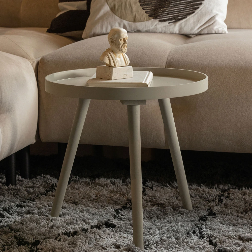 La table basse Sasha est constituée d’un plateau rond en métal peint, de 41 cm de diamètre, qui possède un rebord à la fois pratique et esthétique. Cette dimension est aussi idéale pour les petits espaces, ou comme table d’appoint pour y poser un objet ou une plante. Solidement campée sur sa base en frêne, elle est constituée de 3 pieds compas.