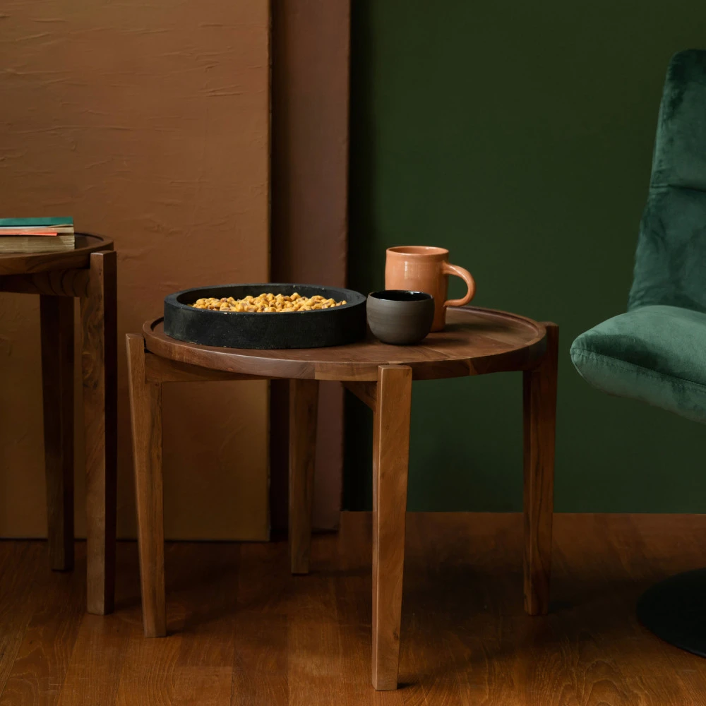 Avec son look à la fois chic et brut, cette table de 59 cm de diamètre apportera du caractère à toutes les pièces de votre foyer. En effet, si elle est généralement cantonnée à être installée en bout de canapé et à accueillir vos lunettes de vue, votre tasse de thé ou votre bouquin préféré, cette table d’appoint endosse également parfaitement le rôle d’extension de bureau ou de table de jeux pour enfants.