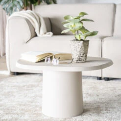 Cette table basse se dote d’un plateau assez épais à la forme rectangulaire à bords arrondis, qui s’inspire un peu des formes organiques, tout en restant assez classique, puis d’un maxi pied central cylindrique. Côté dimensions, comptez 36 cm en hauteur et 57 x 71 cm pour le plateau, des dimensions moyennes.
