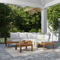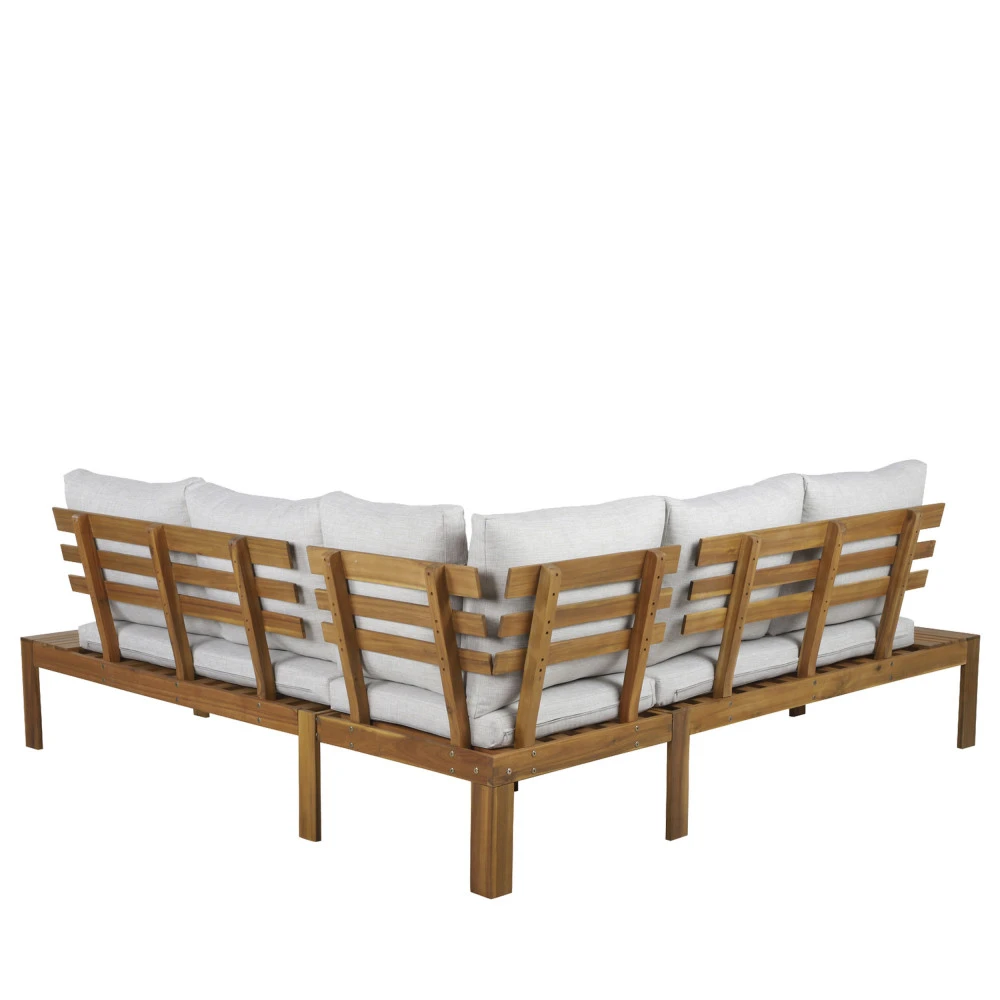 Le tout repose sur une structure en bois massif d’acacia FSC, matériau qui se prête particulièrement bien à un usage extérieur. Chacune des 2 banquettes mesure 142 cm de largeur, 76 cm de profondeur et 70 cm de hauteur. 5 personnes pourront donc y prendre place sans risquer d’empiéter sur la place du voisin. Pour accroître la capacité d’accueil de votre salon de jardin et si la superficie de votre extérieur le permet, n’hésitez pas à lui associer quelques fauteuils.
