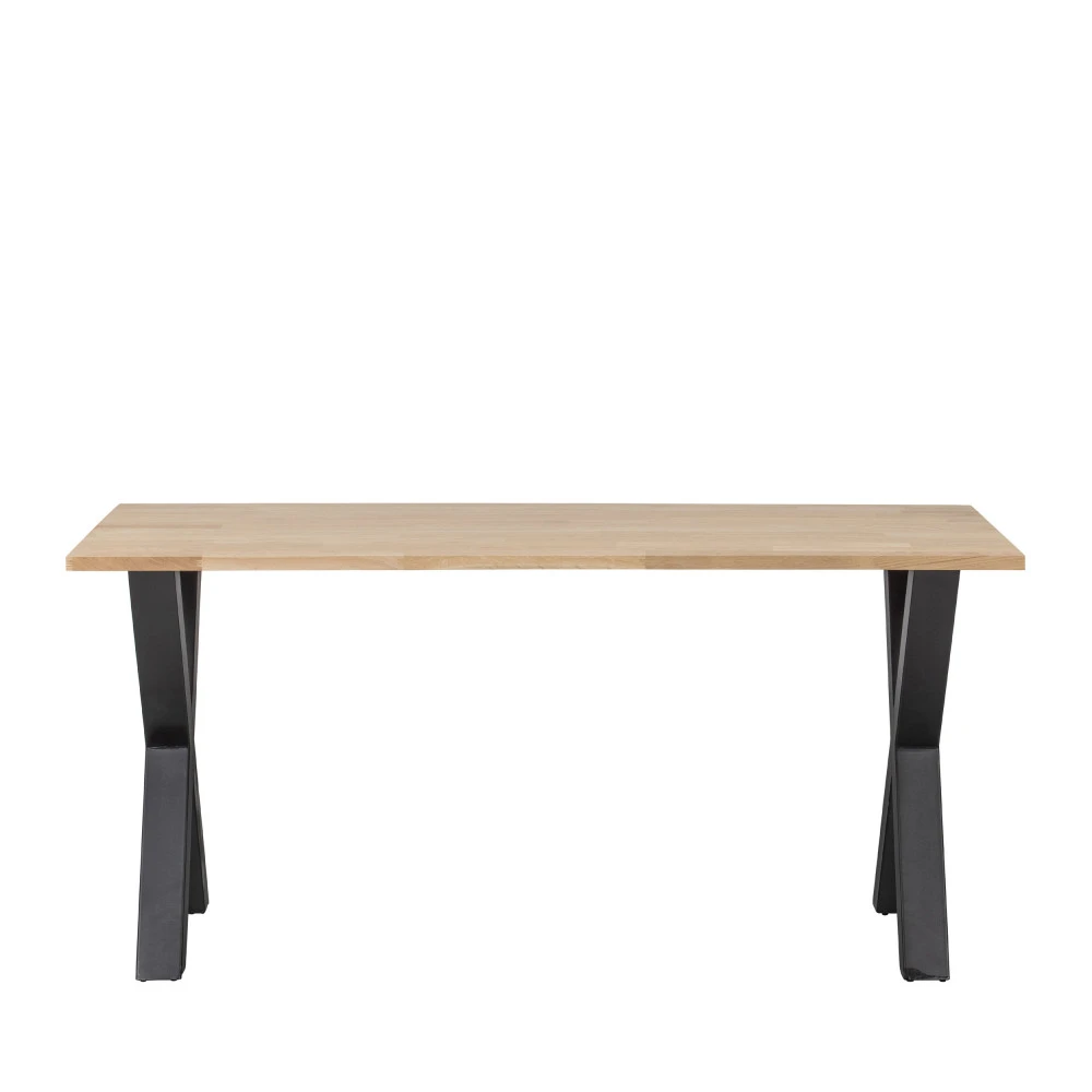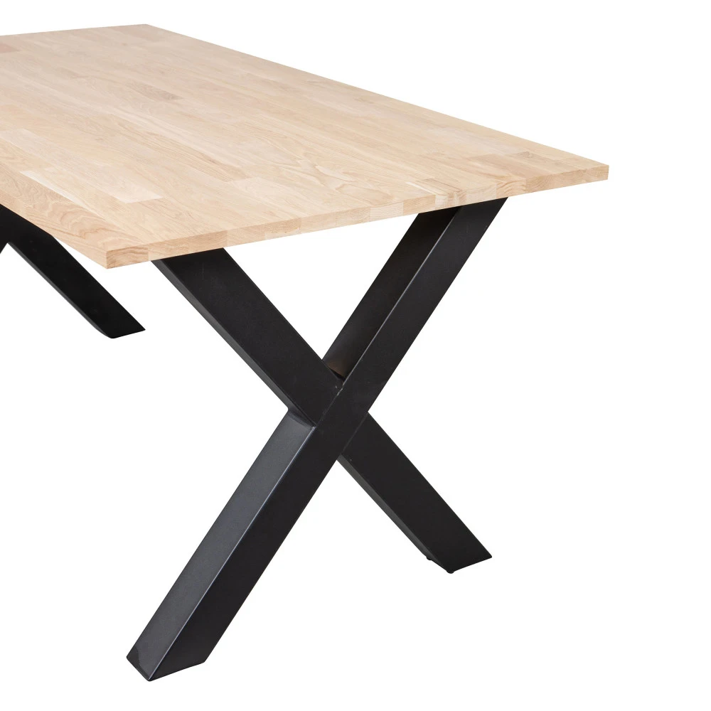 Alliance d’authenticité et de modernité pour cette belle table design qui se caractérise par son piètement en X réalisé en métal. La table à manger Tablo attire directement l’œil grâce à ses dimensions généreuses de 160 x 90 cm, permettant d’accueillir facilement 4 à 6 personnes. Son plateau rectangulaire en chêne massif non traité est doté d’une teinte naturelle et lumineuse. Les pieds en croix sont peints en poudre noir mat pour souligner un design dans l’air du temps. Cette table affiche un poids total de 40 kg pour une capacité de 100 kg. Livrée en trois pièces, elle est facile à monter à l’aide des instructions de montage simples.