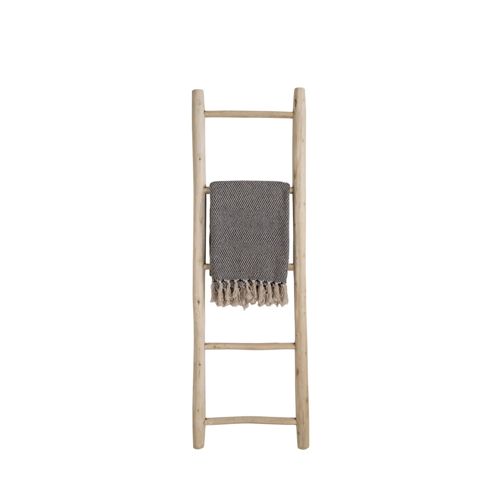 Cette échelle peut être très utile au quotidien et décorer joliment une pièce. Elle pourra se placer dans votre pièce de vie et accueillir un plaid ou deux. Vous pouvez aussi la positionner dans la salle de bain et installer dessus des serviettes de toilette ou votre tenue du jour avant d’aller vous préparer le matin. On l’imagine bien également dans une entrée, pour nouer sur un barreau son écharpe ou son foulard en rentrant du travail le soir.