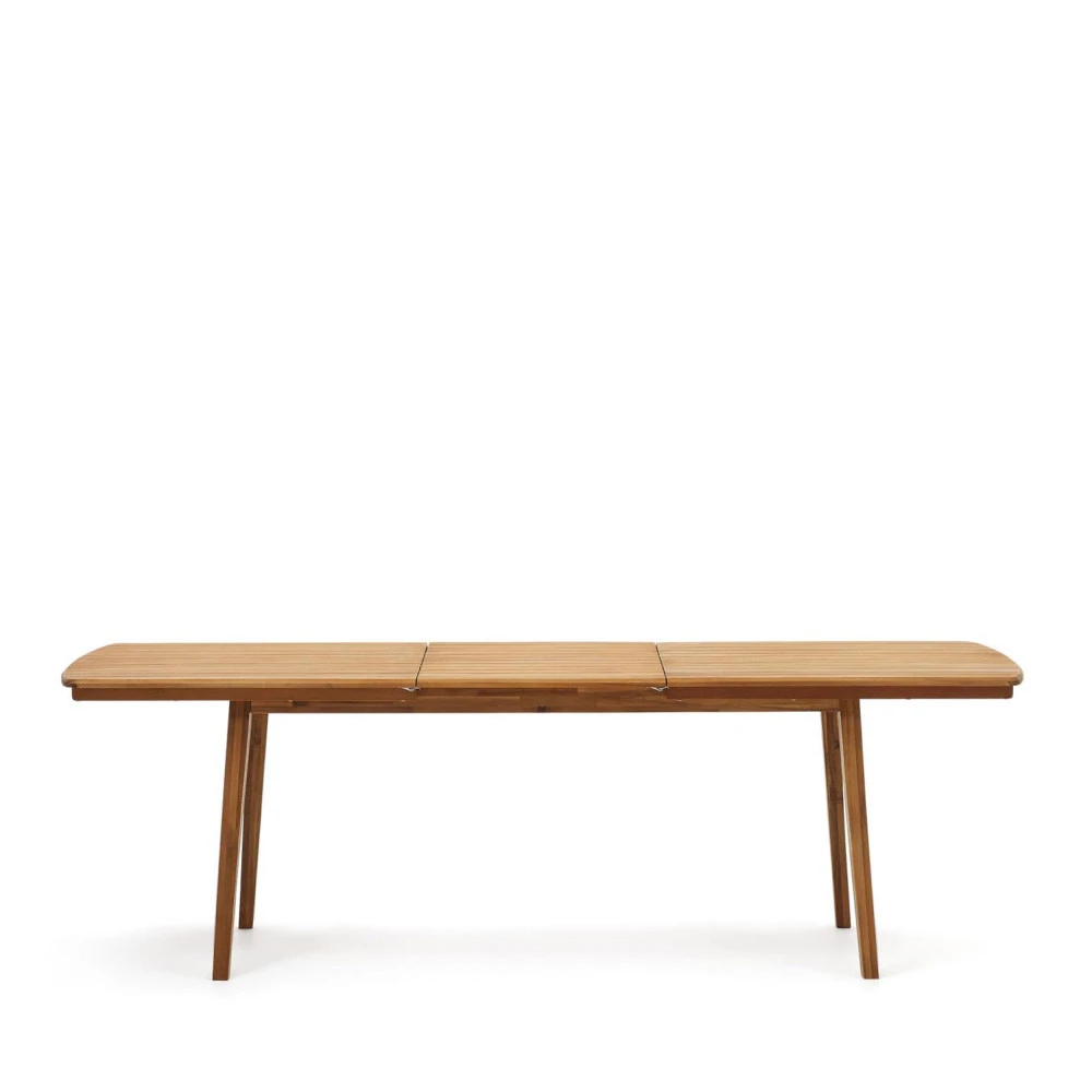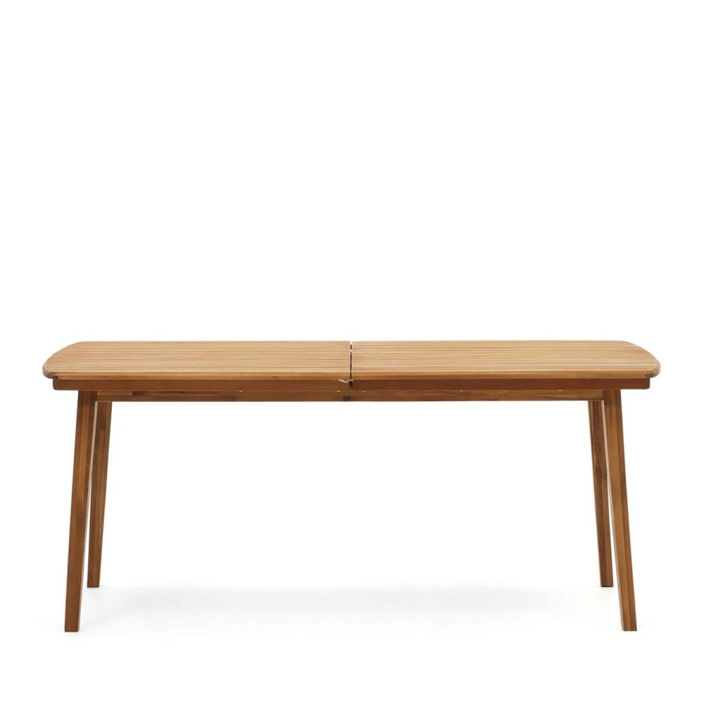 Côté design, la simplicité est ici de mise. Conçue en bois massif d’acacia, cette table à manger à lattes présente une forme rectangulaire et des lignes classiques, dans un style plutôt contemporain. Ce qui signifie que vous pourrez vous faire plaisir côté chaises : banc en bois pour le côté convivial, fauteuils de table cosy à finition corde, ou bien chaises en acier pour un rendu moderne, à vous de choisir ! Tous les types de sièges pourront se marier avec la table Thianna.