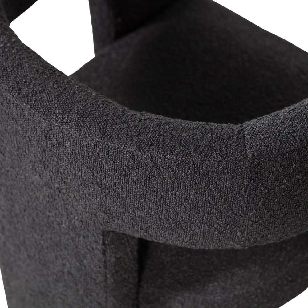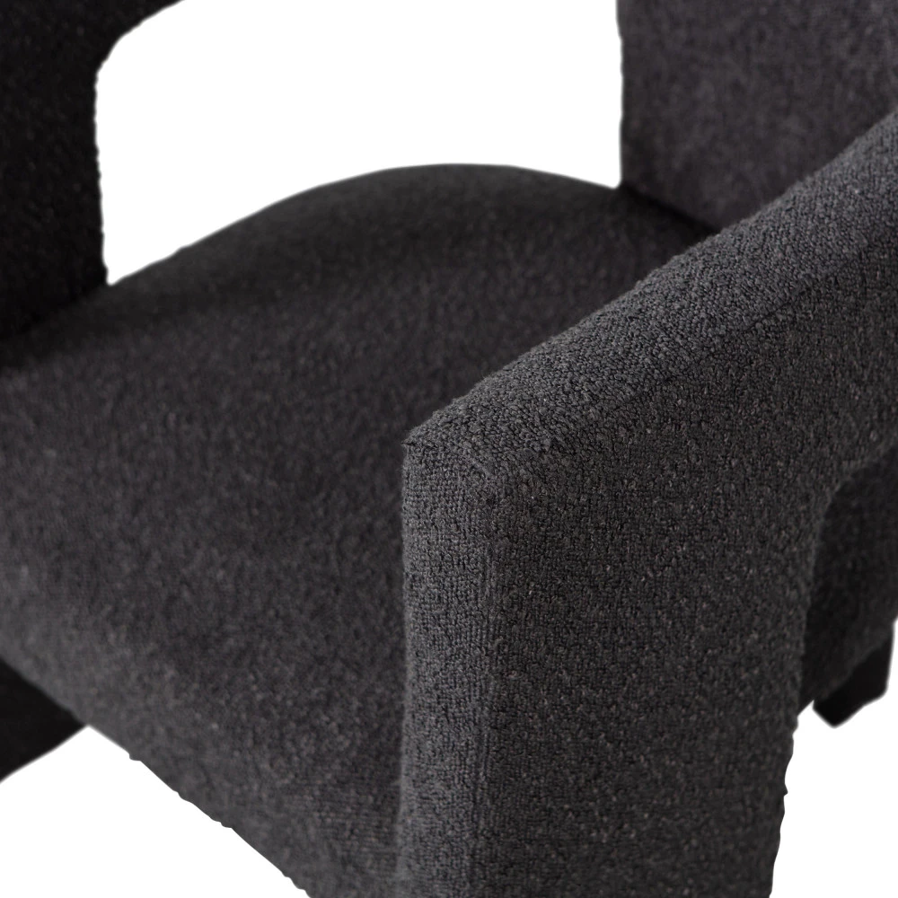 L’assise est entourée de 3 pieds garants d’une stabilité sans faille. Elle est aussi surmontée de 2 accoudoirs ne formant qu’un avec le dossier. N’hésitez pas à ajouter un petit coussin de couleur vive qui viendra apporter une touche de peps au tissu bouclette qui recouvre la totalité de ce fauteuil. La teinte dont il se pare lui donne un look contemporain et élégant qui sera le bienvenu chez vous.