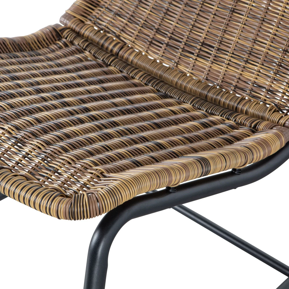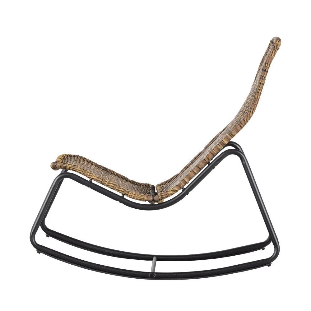L’ensemble du rocking-chair Tom est composé d’une haute assise tressée en plastique solide, qui lui confère un look naturel. Quant à sa forme, elle épouse le dos pour s’y installer confortablement. Il est constitué d’une structure en métal noir tubulaire, profilée et design, qui assure le style contemporain de ce modèle revisité. Sa stabilité est assurée par une barre de renfort au milieu qui assure un maintien parfait du siège lors des mouvements de bascule.