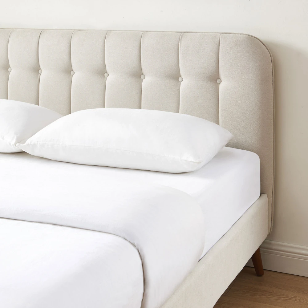 Vous vous demandez sûrement comment un lit peut avoir autant de style ? Eh bien, c’est grâce à son revêtement en velours ultra doux et parsemé de boutons, qui lui donnent cette apparence matelassée. Si votre chambre à coucher n’est pas trop décorée ou si vous souhaitez lui ajouter LA dernière touche tendance, la tête de lit intégrée de Torgo fera son petit effet.