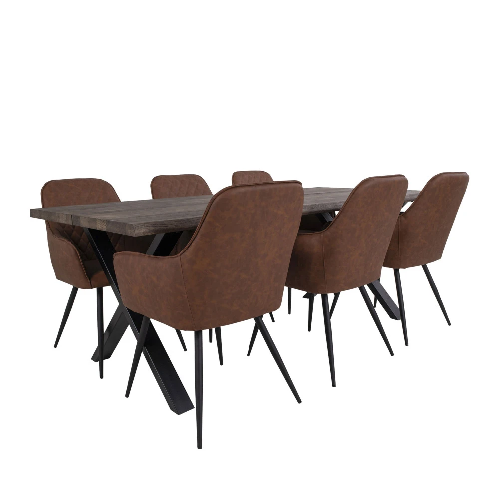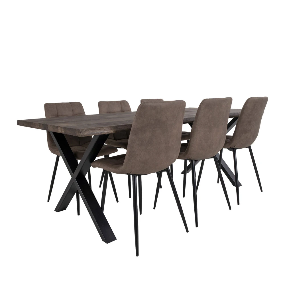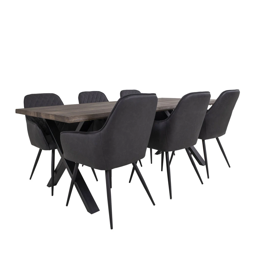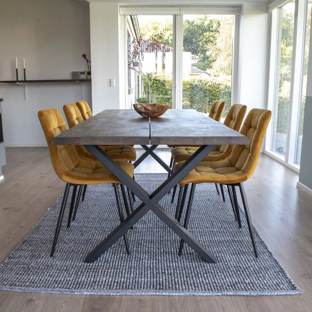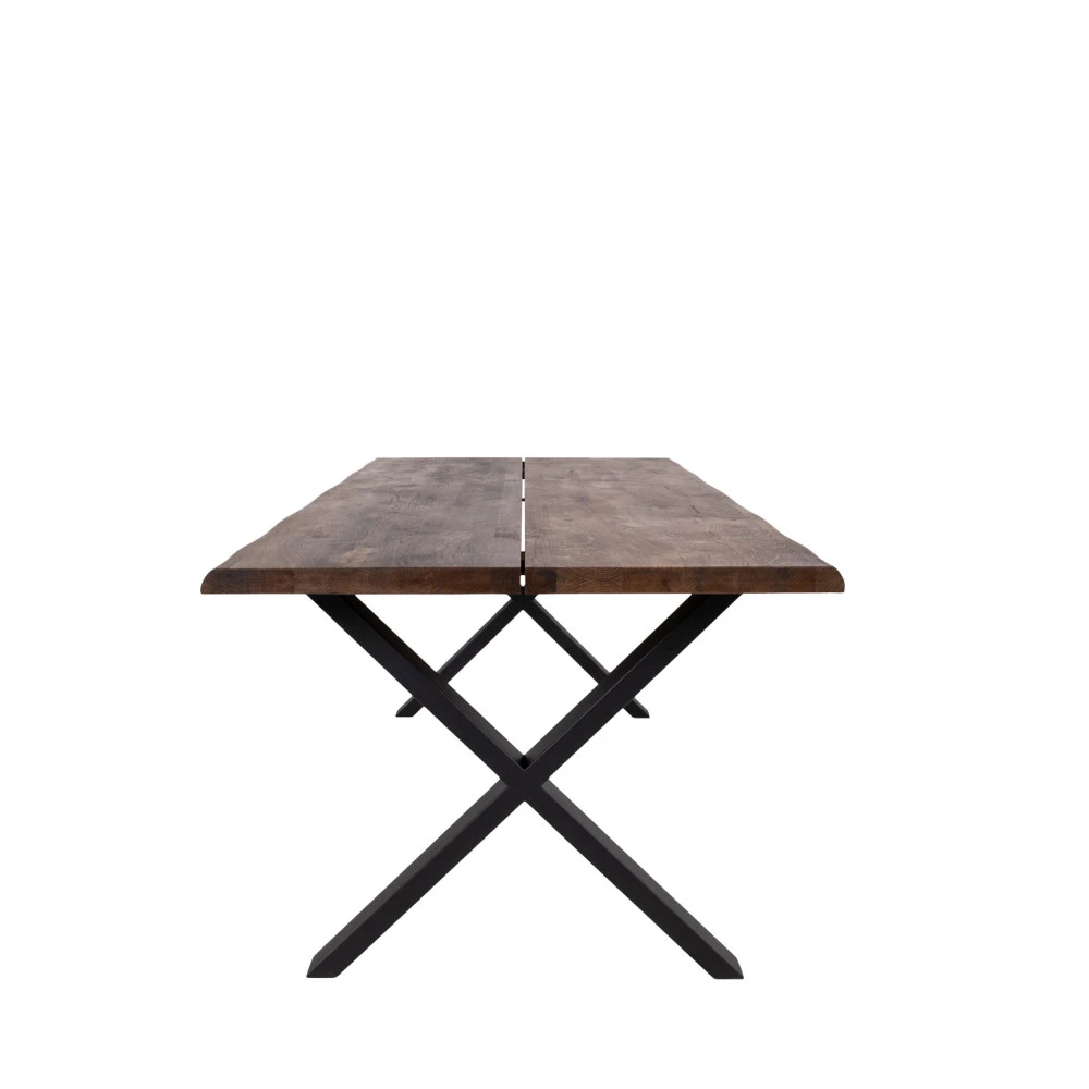 Pour recevoir vos proches à dîner et décorer votre maison avec style, la table à manger Toulon signée House Nordic est assurément un bon choix ! Cette grande table mesurant 200 x 95 cm et 76 cm de haut se dote d’un épais plateau en bois teinte claire ou foncée, avec une élégante finition en vagues, puis de pieds croisés en métal noir. Cette table bi-matière est idéale pour 6 personnes, en installant 3 convives sur chaque longueur. Vous aurez ainsi un bel espace pour manger et refaire le monde pendant des heures.