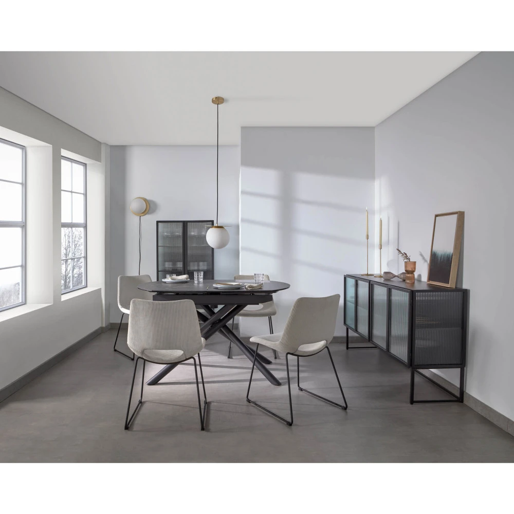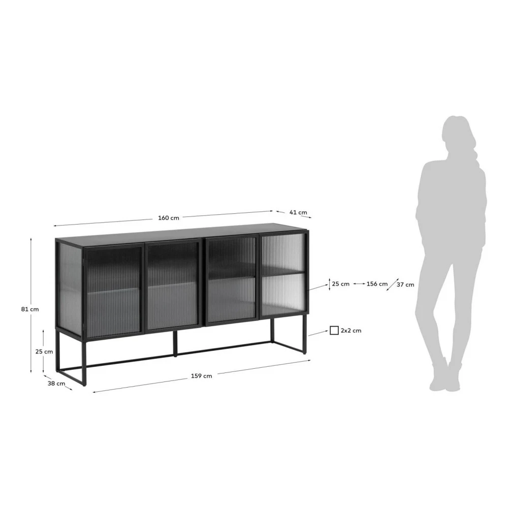 Ce meuble de rangement au style moderne présente un design simple et bien pensé qui s’intègre sans souci dans tous les décors. Le buffet Trixie est équipé de 4 portes en verre trempé lui conférant une allure très raffinée. Le verre strié de la façade donne un look remarquable à ce meuble et confère à l’ensemble une touche originale. Derrière ses portes se trouvent deux compartiments spacieux pour ranger divers objets comme la vaisselle ou le linge de maison. À la fois sobre et léger, Trixie apporte un effet bluffant à la décoration intérieure.