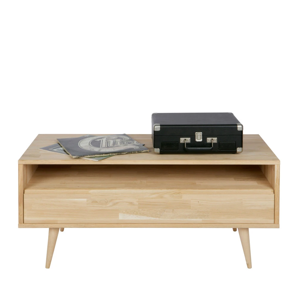Drawer vous propose un meuble design et tendance pour supporter votre télé : le meuble TV en chêne massif Tygo ! À la fois pratique et esthétique grâce à sa niche et son tiroir. On y glisse tous ses accessoires TV et multimédia pour un salon organisé. Ses dimensions (47x100cm) permettent d’en profiter dans des petits comme des grands espaces.