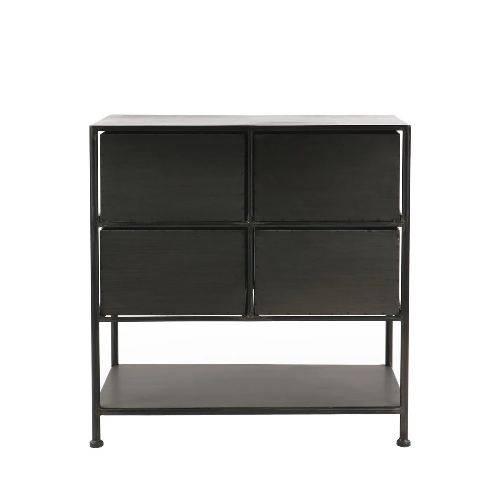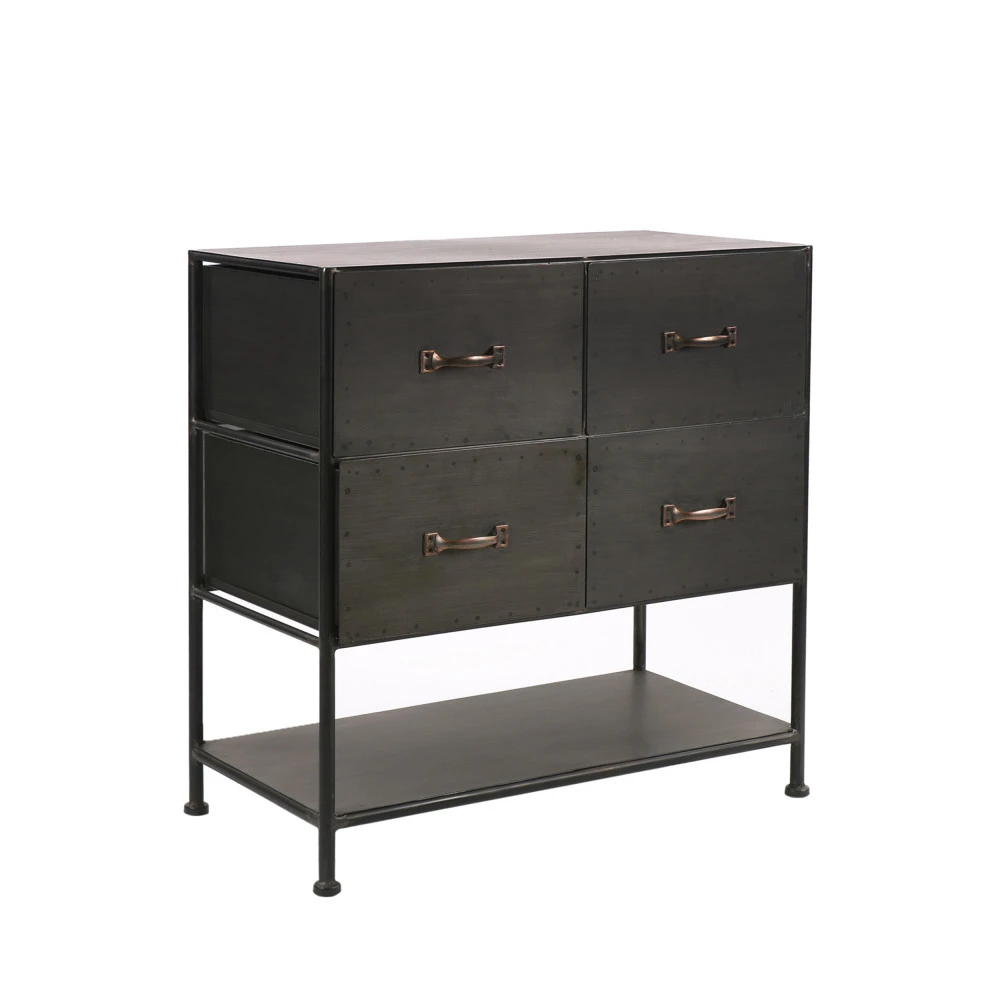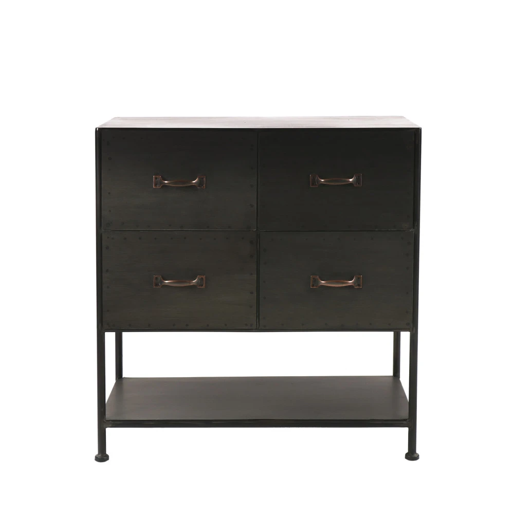 La commode industrielle Typographic Pomax est conçue en métal avec une finition vieillie. Fonctionnelle, elle est munie de 4 tiroirs lui ajoutant fonctionnalité. Elle offre un bon volume de rangement et peut accueillir vêtements, documents et ligne de maison.