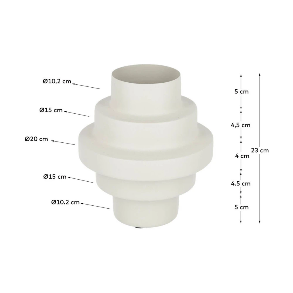 Velia mesure 23 cm de hauteur, 21 cm de largeur et 21 cm de profondeur, des dimensions idéales. Il est assez compact pour se glisser dans n’importe quel espace, mais suffisamment grand pour vous séduire dès que votre regard se posera dessus. Entièrement réalisé en métal, vous apprécierez sa robustesse et sa facilité d’entretien. Merci Kave Home !