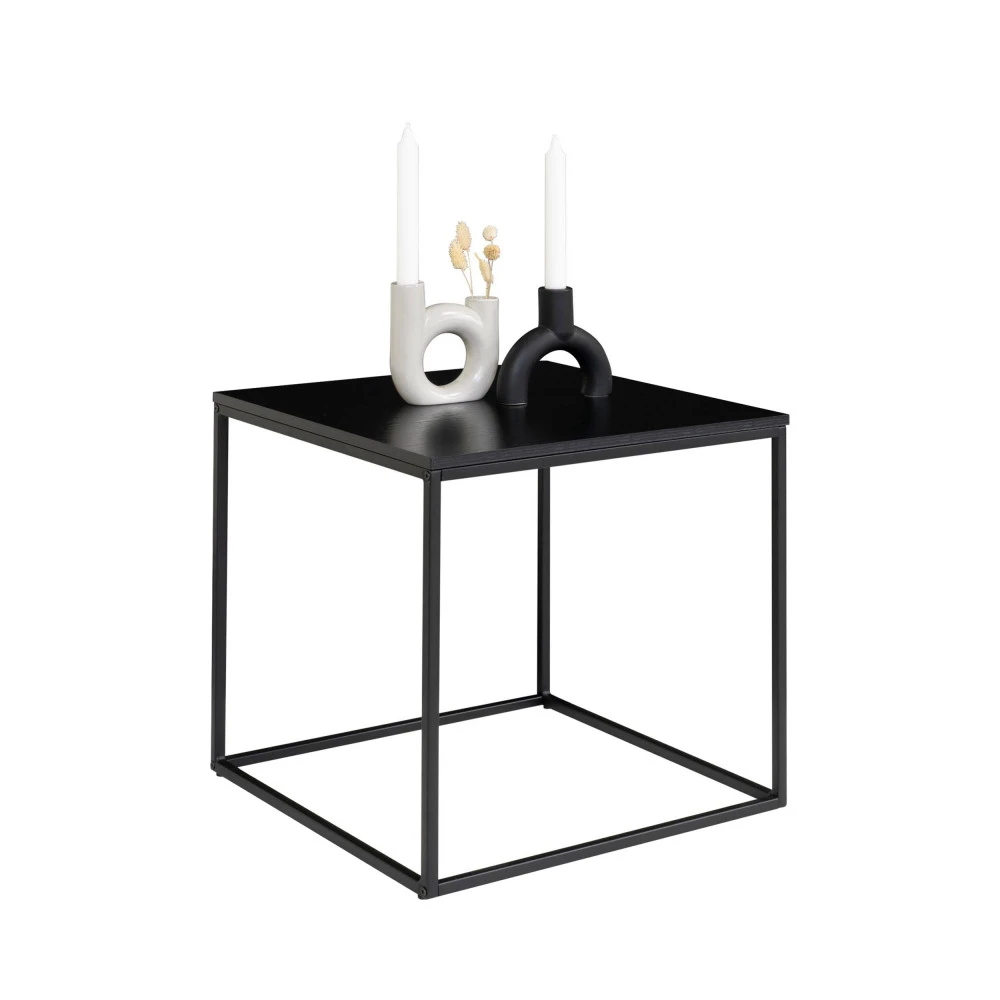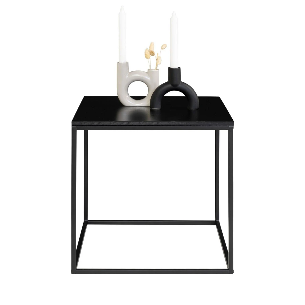 Ce bout de canapé bi-matière de forme carrée se compose d’un plateau de 45 x 45 cm en bois teinte naturelle ou noir avec des pieds plutôt fins en métal noir, reliés à la base en carré. Il mesure 45 cm également en hauteur. Comme un cube ajouré, ce petit meuble au design épuré plaira à coup sûr aux amateurs de mobilier contemporain ! Quel que soit le coloris choisi, il s’accordera facilement à votre canapé, vos fauteuils et votre décoration.