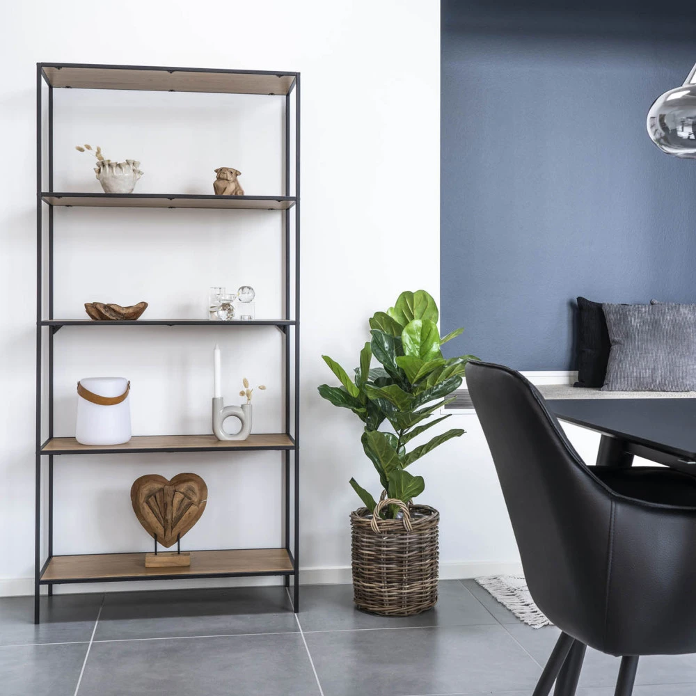 Ce meuble pratique est idéal dans un salon ou dans une salle à manger, mais peut aussi trouver sa place dans une grande chambre ou dans un bureau spacieux. À vous de voir. Sur cette étagère, vous pourrez disposer des vases, des bougies, des souvenirs de voyage ou tout autre déco que vous aimez. Vous pourrez ainsi exposer avec fierté tous vos beaux objets. Pour optimiser le rangement, vous pouvez également disposer des panières sur l’étagère du bas.