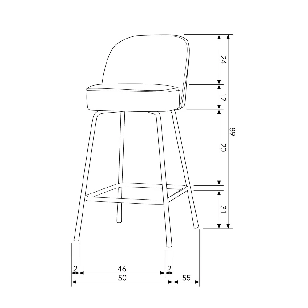PerchĂ© Ă 65 cm de haut sur un solide piètement en mĂ©tal avec repose-pied, il existe aussi en version plus haute Ă 80 cm. Pour les sols durs, placez des patins en feutre sous les jambes. Cela permet d’Ă©viter les dĂ©gâts au sol.