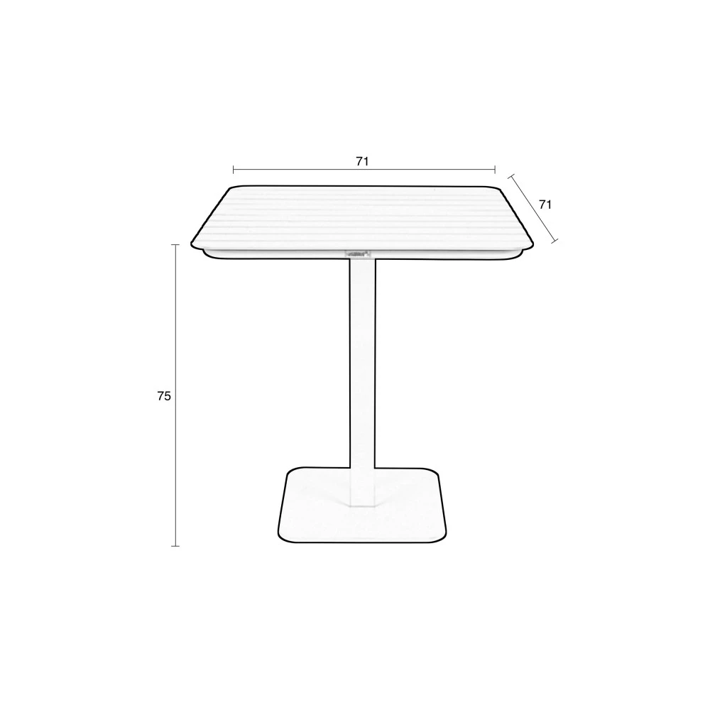 Parce que l’espace extérieur mérite aussi d’être bien aménagé (tout comme l’intérieur), Zuiver propose la table à manger de jardin bistrot en métal Vondel. Avec ses dimensions compactes et pratiques, cette table d’extérieur est conçue pour un encombrement minimal. Idéal pour accueillir deux personnes, ce meuble d’extérieur sobre et épuré possède un plateau de 71×71 cm. La table repose sur un pied central qui se termine par une base de forme carrée, conçue pour assurer une grande stabilité à l’ensemble. Discrète et moderne, Vondel est idéale pour ajouter une touche branchée à la déco du jardin.